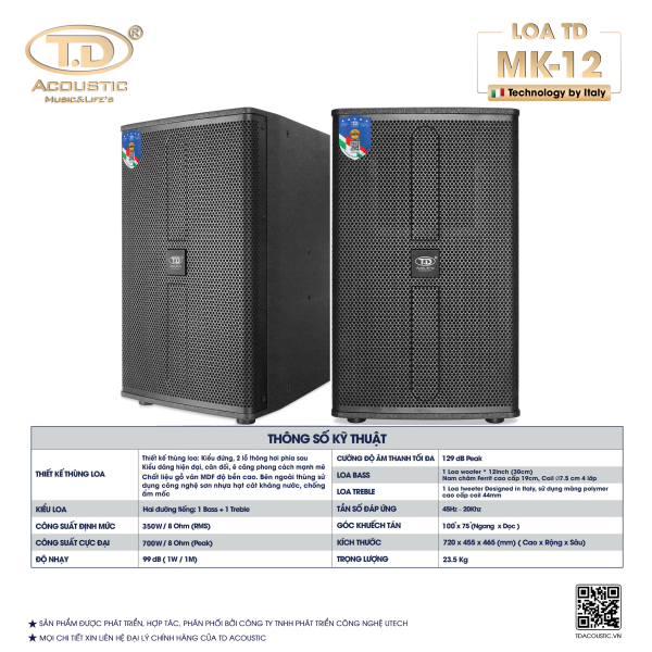 LOA CHUYÊN NGHIỆP TD MK-12 ( DESIGNED BY ITALY)